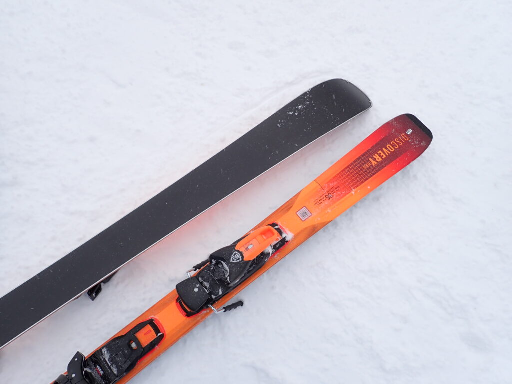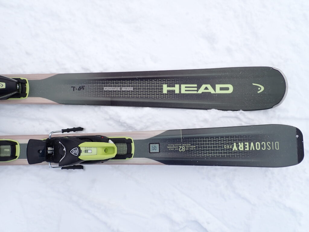 プロとスポーツは芯材が異なりますが、見た目ではわかりません。見た目で分かるのはビンディングですね。チロリアの最先端ビンディングのプロテクターの二代目が搭載されていました。ヒールピースが横にもズレて解放しますし、トゥピースが上方向にも開放される安全性トップのビンディングです。